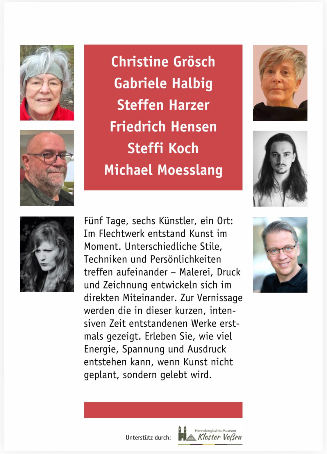 Vom 8. bis 12. April 2026 wird dieser besondere Ort zu einem lebendigen Raum des künstlerischen Austauschs. Sechs Künstlerinnen und Künstler aus Südthüringen sowie dem nördlichen Unterfranken kommen zusammen, um sich intensiv mit Malerei, Zeichnung und Drucktechnik auseinanderzusetzen. Dass dieser Prozess bewusst offen gestaltet ist und Besucherinnen und Besucher täglich Einblicke in die Arbeit der Kunstschaffenden erhalten, unterstreicht die besondere Qualität dieses Formats.